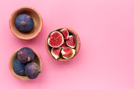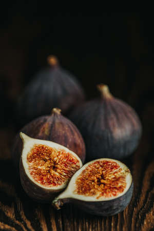 Ripe Fig Fruits on old wooden background. Paleo diet, still life with copy space. Shallow depth of the field.