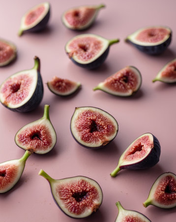 AI Generated. Fresh figs sliced on a pink backdrop creating a vibrant and appetizing display for culinary inspiration