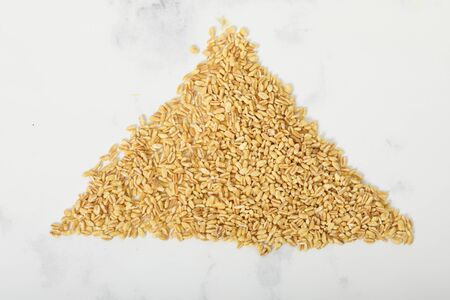 Rye flakes pattern and texture, a close up photo image of rye flakes isolate in white bright light background present a detail of texture and pattern of rye flakes