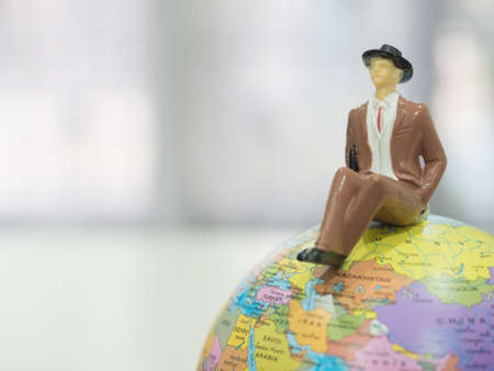 Miniature people , businessman standing on the world map and copy space.