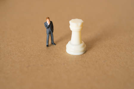 Miniature people: Businessman standing on the chess game, use as a business competition concept.