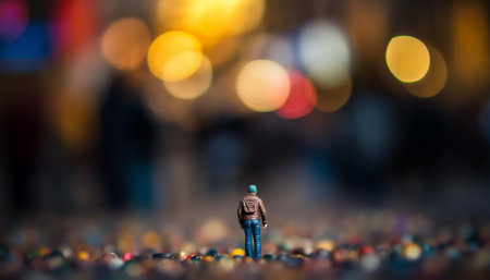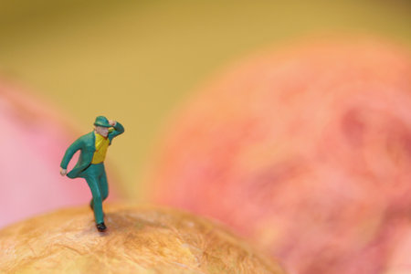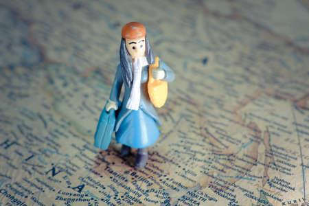 miniature of woman stand on the map of macro photography