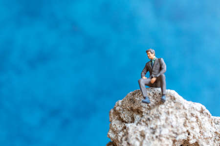 Miniature people Businessman sitting on the rock
