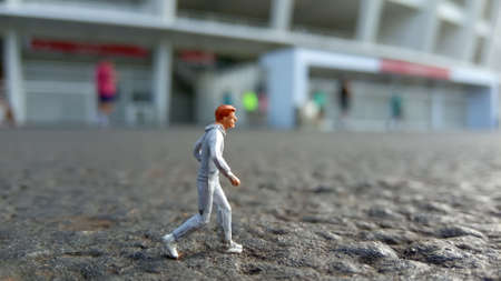 Running Mini Figure man in the morning, at Gelora Bung Karno Stadium