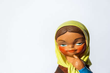 Cute girl figurine thinking with a country dress and yellow scarf on her head