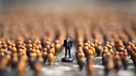 leadership conceptual image, the true leader standing in center surrounding by crowd, standing out of the crowd, miniature toy model. beautiful Generative AI AIG32