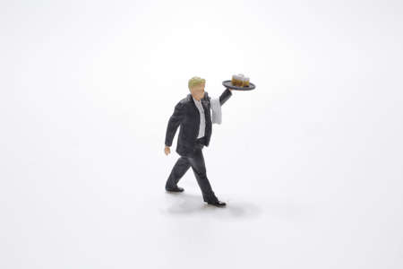 Mini scale model waiter on a white board