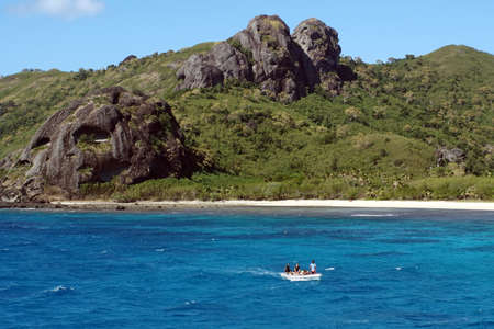 Boat off the coast at Kuata Island, Fiji South Pacific