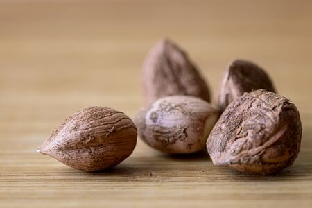 macro hazelnut on wooden table