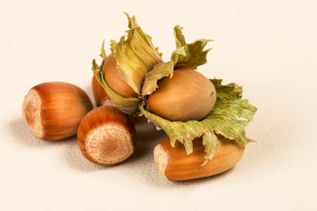 Hazelnuts on a structured background