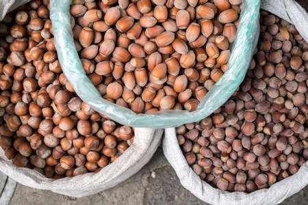 Raw hazelnuts after the harvest