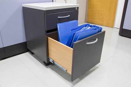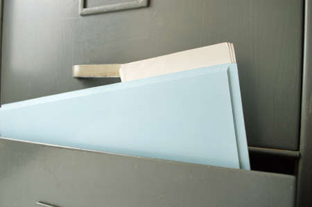 blue file folder documents In a file cabinet retention of contracts - concept