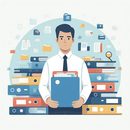 Vector illustration of a businessman holding a folder with documents in his hands.
