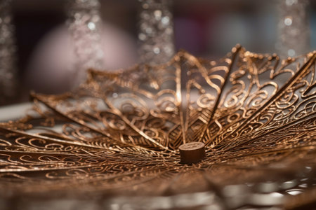 high-speed photography of intricate metalwork and patterns, with blurred background, created with generative ai