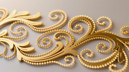 Golden decorative swirls with beads showcase intricate craftsmanship and elegance.