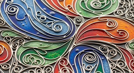 A vibrant and intricate paper quilling artwork featuring swirling patterns in various colors, showcasing the beauty of handmade crafts. Perfect for art and craft themes