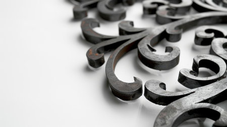 This image showcases an elegant wrought iron design, featuring intricate curls and swirls that capture a blend of artistry and craftsmanship. Perfect for home decor or architectural inspiration.