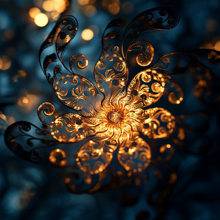 Explore the beauty of this intricate floral design featuring glowing accents. The soft, abstract background enhances the elegance and warmth of the art.