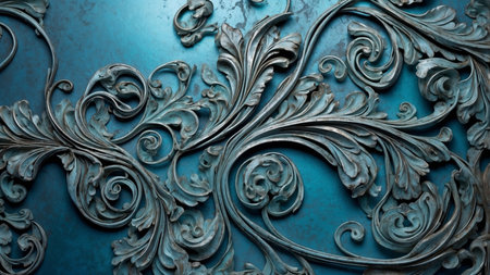 This captivating close-up showcases an intricate floral design on an antique metal surface. The elegance and detail highlight expert craftsmanship, perfect for artistic projects.