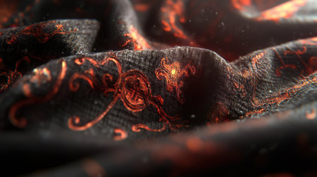 This captivating close-up image showcases a luxurious fabric with intricate patterns, rich colors, and a soft texture, perfect for design inspiration.