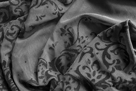 texture, background, black silk fabric with a monogram pattern Exquisite pattern of filigree fabric your design will delight you for a long time