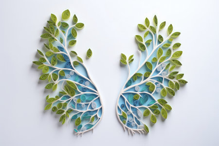 Symbolic healthy lungs using Blue Hole Lungs green twigs Minimal Paper Art Celebrating World Tubercu