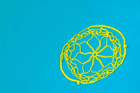 A bright arrangement of multicolored cords stacked neatly on a solid blue background, perfect for creative projects and artistic endeavors. The vibrant hues add a playful element to any design.