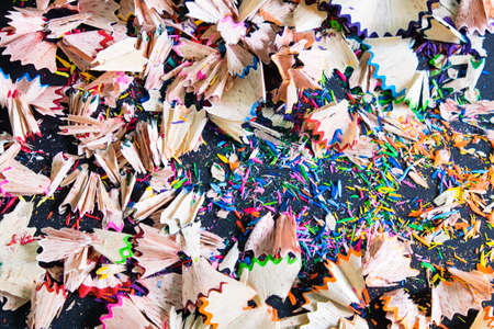 colored shavings from pencil sharpening, background or texture