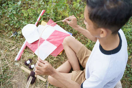 Closeup to hand of Thai students grade 4 in primary school are weaving pattern thai.