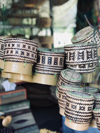bamboo container for holding cooked glutinous rice, Kratib rice is a valuable handicraft container that is rich in local wisdom.