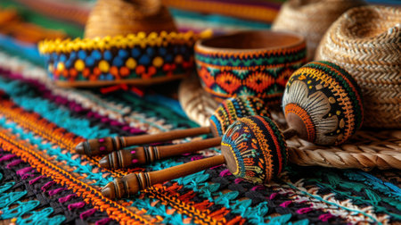 vibrant mexican fiesta scene with colorful maracas and sombreros on a table at a san antonio event, embodying a traditional and lively celebration