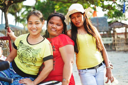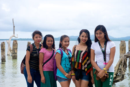 Puerta Princesa, Philippines - October 16, 2014: Smiling Teenage school girls at the beach in the Philippines