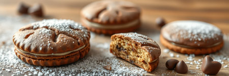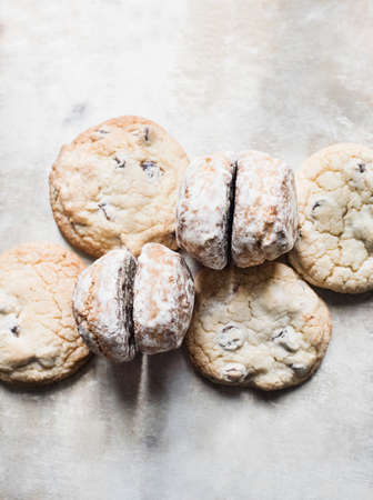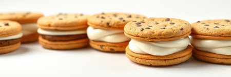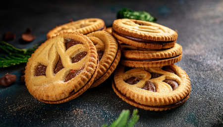 chocolate chip sandwiches with creamy filling, crispy fresh cookies with cocoa and buttercream