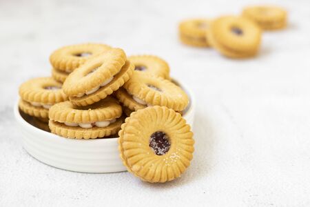 Tasty biscuits with filling on a plate.Tasty biscuits with filling on a plate