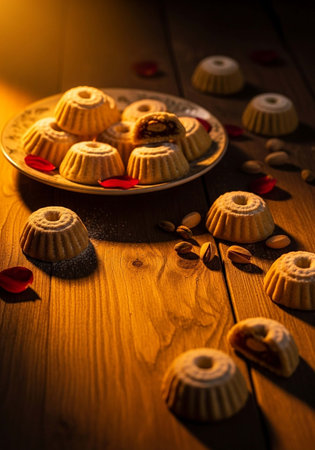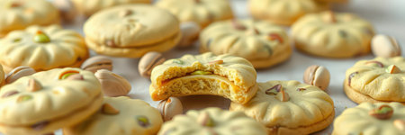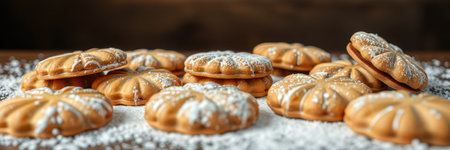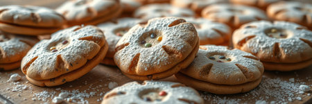 Beautiful patterned cookies. High angle view. Directly Above Shot Of Sweet Bakery Goods. Generative AI Illustration. _ai_generated . High quality illustration