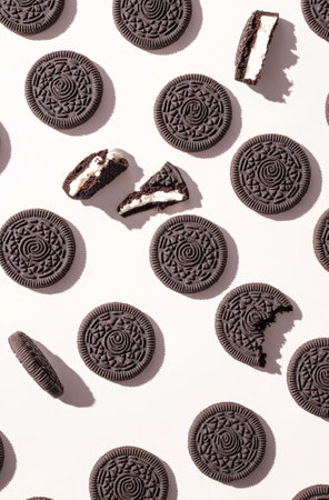 Delightful chocolate cookies arranged artistically on a neutral backdrop