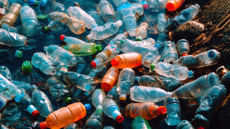 Recyclable garbage of plastic bottles in rubbish bin environment conceptual.