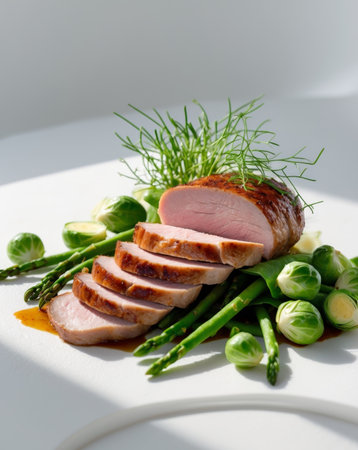 AI Generated. Gourmet Duck Breast with Green Vegetables