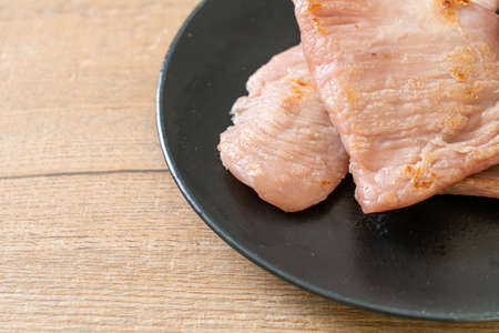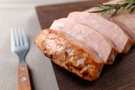 salted pork tenderloin on a plate close up