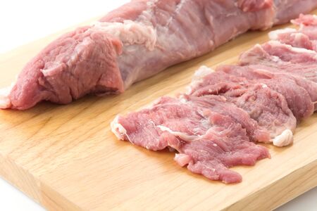 raw pork tenderloin slice ingredient food on white background