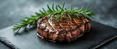 AI Generated. Grilled Beef Steak with Fresh Rosemary on Slate Board Ready to Delight Food Lovers