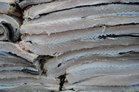Texture of a block of frozen fish in close-up. The concept of fishing and trade. Poaching.