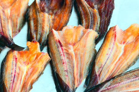 Red fish fillet at street market in Thailand. Seafood concept. Raw sea fish fillet for cooking, close up