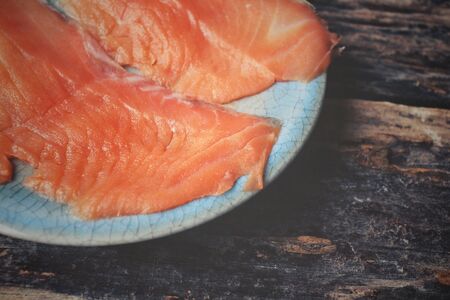 Salmon steak pattern, conceptual salmon background, flat lay composition