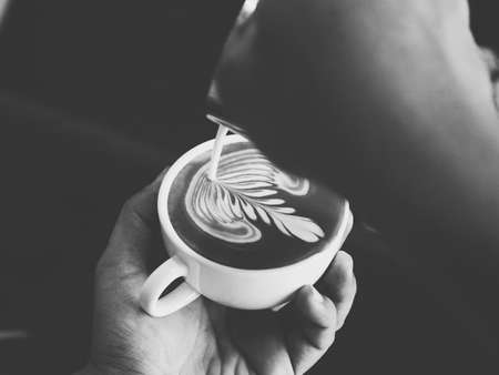 coffee latte art in coffee shop in vintage color tone