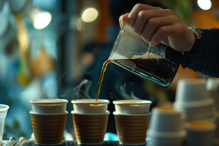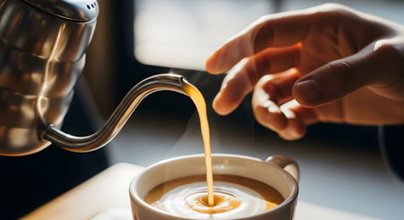 A person is pouring a cup of coffee. Generative AI image.