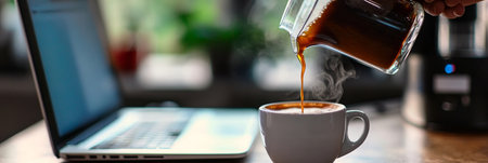 Close-Up of Morning Coffee Ritual Energizing Brew for Productive Workday and Telecommuting Success
