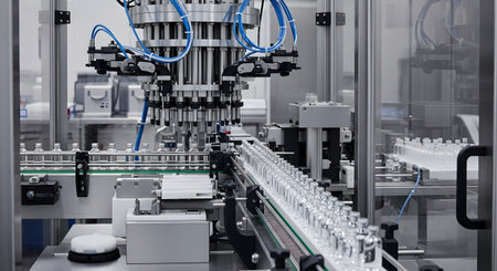 Automatic machine for filling ampoules and vials. Modern pharmaceutical equipment.
