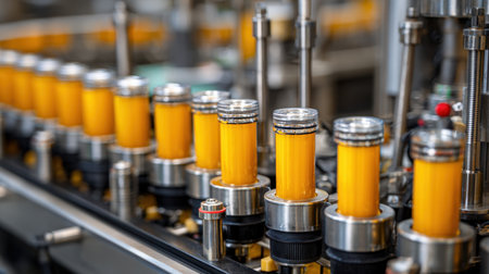 Conveyor Belt in Action: Fruit Juice Manufacturing. Generative AI