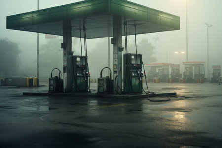 the fuel dispenser, the fuel pump, and the green, red, high, low graphs float in the empty space. Next to the fuel dispenser, there are several crude oil tanks placed next to it